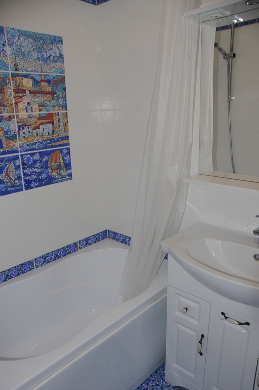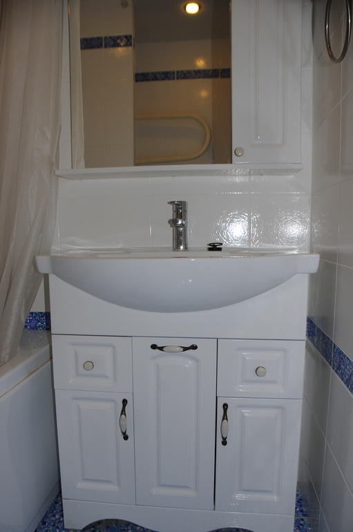 Отдельная история с ванной. Ее переделали самым кардинальным образом. Полностью снесли стены и построили заново, т.к. старые были из соломы вперемешку с цементом ))) Площадь ванной не меняли, но перенесли ванную и раковину в другое место. Сделали унитаз-инсталляцию, изрядно сэкономив пространство. Ванная маленькая, 1.20(была сидячая 1.50), но решили все таки не делать душевую кабину. Очень уж часто текут, да и отмывать стекла от известкового налета вряд ли кому понравится.