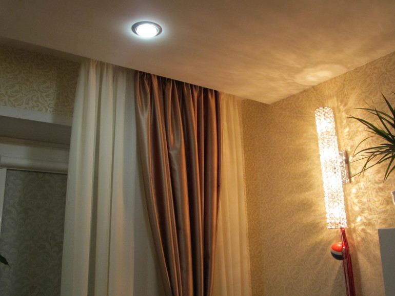 Лет 5 назад делали ремонт и купили гнущийся карниз (пластиковый) белого цвета, крепится на потолок. Муж его повесил...как бы это обьяснить...как волной он идёт - вверх-вниз. Продаётся определенной длины (не помню, метра 3 вроде), но его можно подрезать. Покупали в Леруа.
