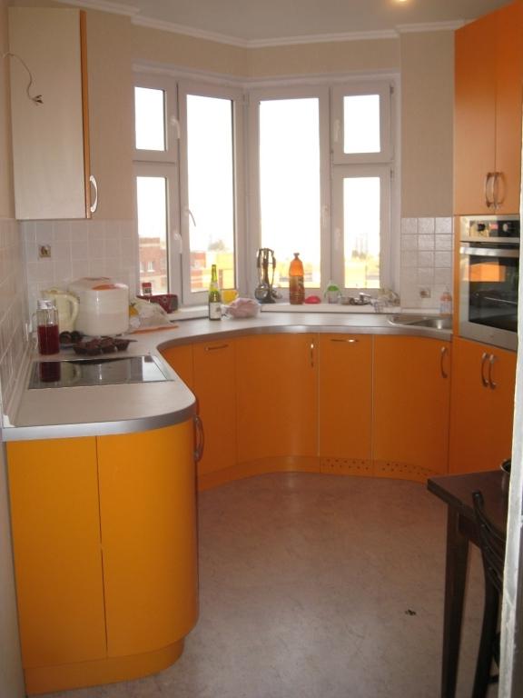 Добрый вечер! У Вас стандартная кухня с полуэркером , такие в основном встречаются в сериях домов п44-т. наберите в поисковике яндекс "дизайн кухни с полуэркером п44т" , там очень много фоток с примером кухни как у Вас