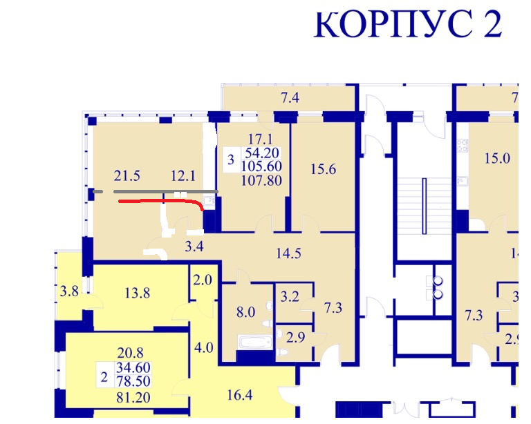 Стены, которые есть на плане, переносить нельзя, как нам сказали. Поэтому работаем с тем, что есть:) муж предлагает поставить стену здесь (красная линия)