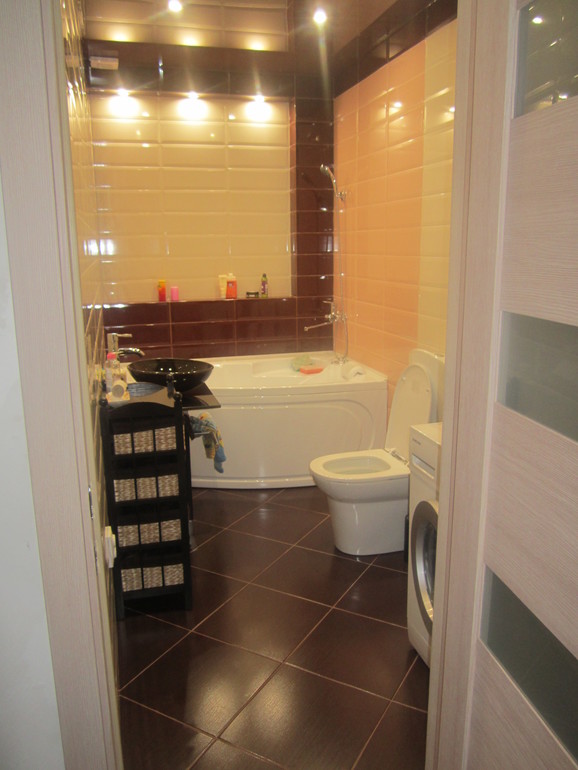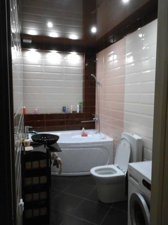 Темный глянцевый потолок (коричневый) в санузле?Практично?
