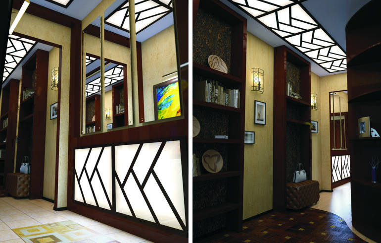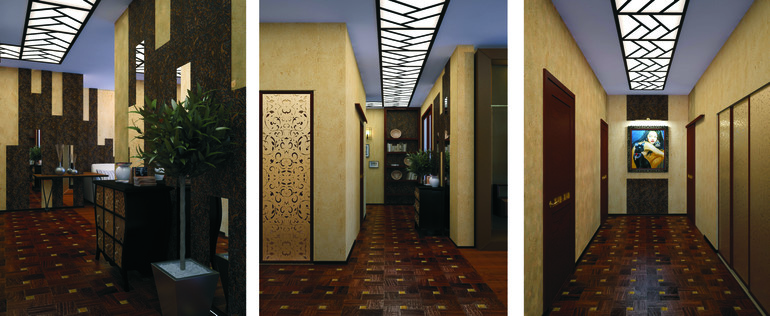 - в конце коридора 3д панелями выделена картина (эта существующая картина, которая очень нравилась клиентам и без нее - никак)