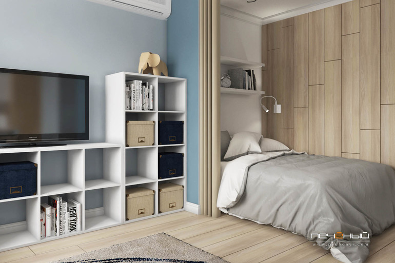 Ооочень симпатично!!! По функционалу тоже понравилось - задернуть шторку удобнее, чем дважды в день раскладывать/складывать диван, а полноценную спальню размещать - жертвовать гостиной.