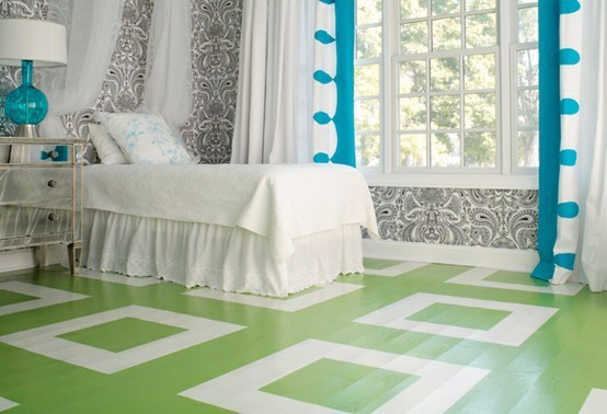 Деревянные полы окрашенные в необычные цвета.