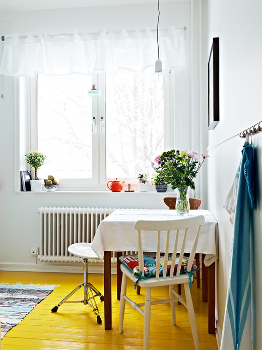 Всё о полах , стенах, потолках и материалах для нихВ скандинавских интерьерах часто вижу деревянные полы окрашенные в белый цвет и мне пришла идея покрасить в спальне на даче полы в яркий цвет. Кто нибудь уже сотворил у себя что то подобное? Хотелось бы отзывов, советов как это в жизни смотрится, какую краску использовать? Далее много фотопримеров.