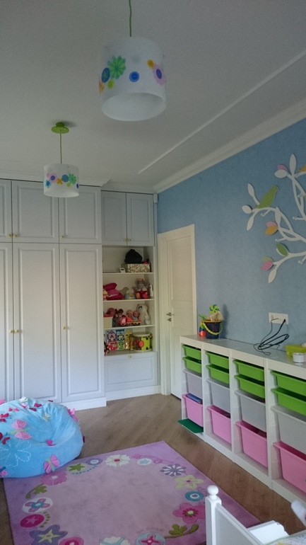 Ну и фото быстро на телефон пока дочь не навела "порядок", делали бюджетно на "убой" тк дочке 2 года. Детская, пока единственная комната в квартире где почти все готово)
