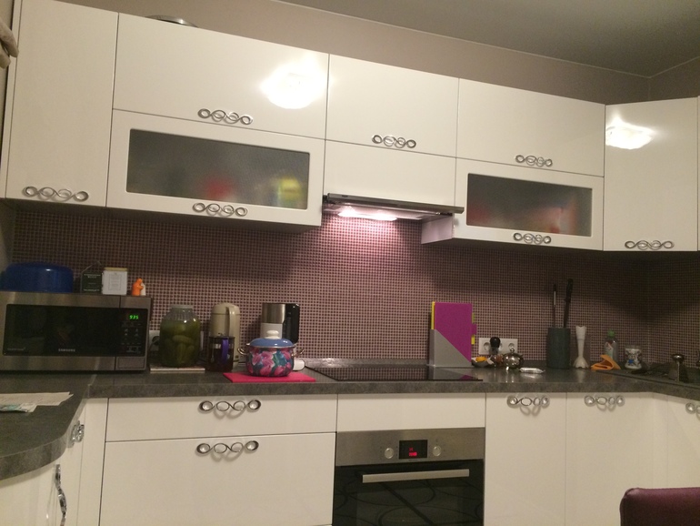 Кухня красивая. Фасады классные. И плитка прикольная. Но мне не понравились ручки, извините пожалуйста, если обидела. Я бы поменяла их на более прямые и лаконичные что-ли. Но главное, что вам и вашей семье нравится.