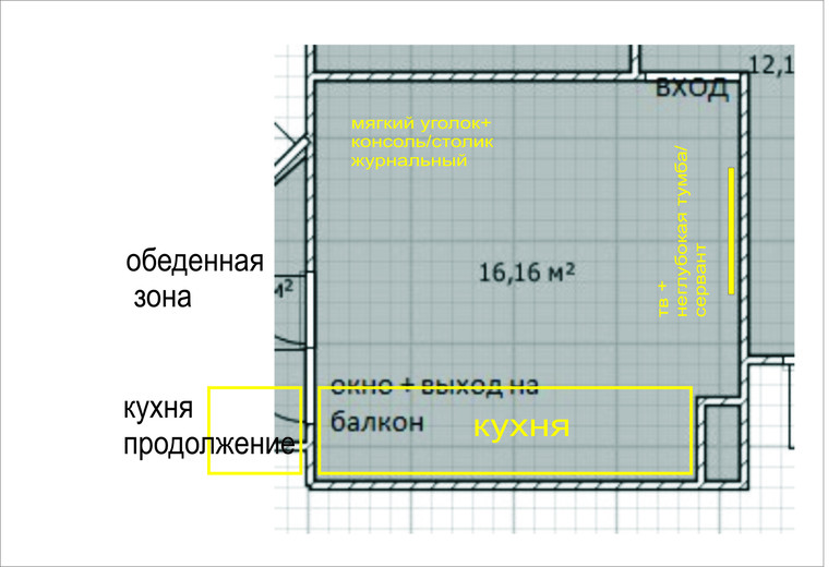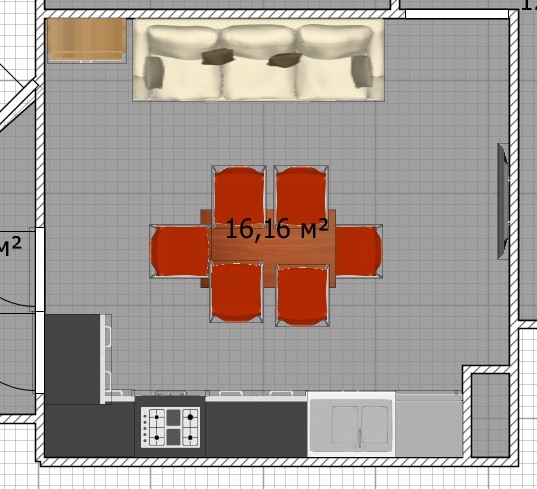 добрый день,пишу в этом сообществе впервые, помогите пожалуйста как расставить мебель в помещении 16кв чтобы и кухня была удобная и просторная и диван был, телевизор и чтобы гостей много поместилось за стол. Всю голову уже сломала(((заранее большое спасибо)))