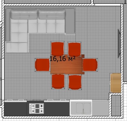 А так, на 16 метрах можно сделать кухню, но с диванчиком просто, чтобы попе было мягко)