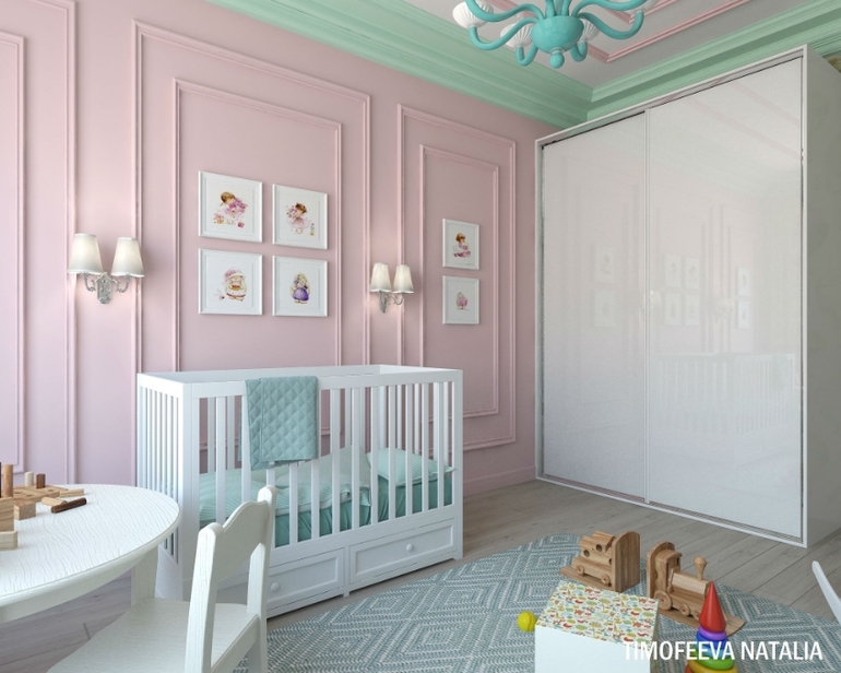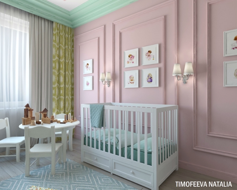 И разрешите сказать, что не понравилось. Слишком много молдингов, везде и всюду. Понятно, что они объединяют все комнаты, но, по мне, это перебор, особенно в детской. Извините, без обид!