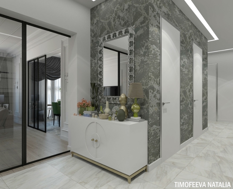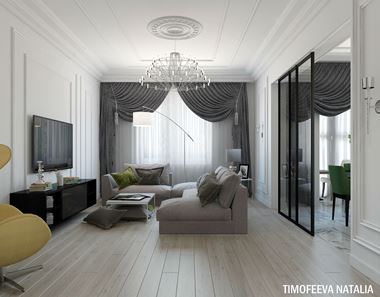 Дизайн 3 ком.квартиры был разработан в соответствии с пожеланиями заказчика в стиле современная классика.