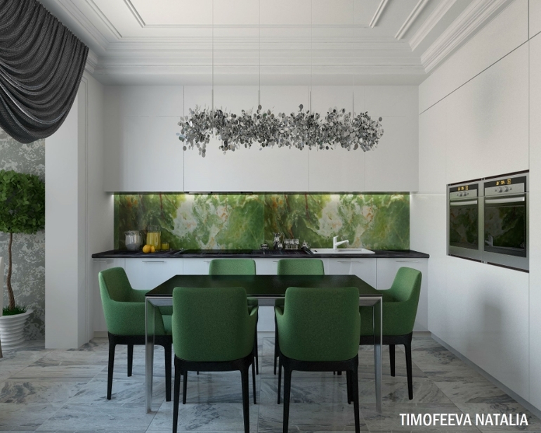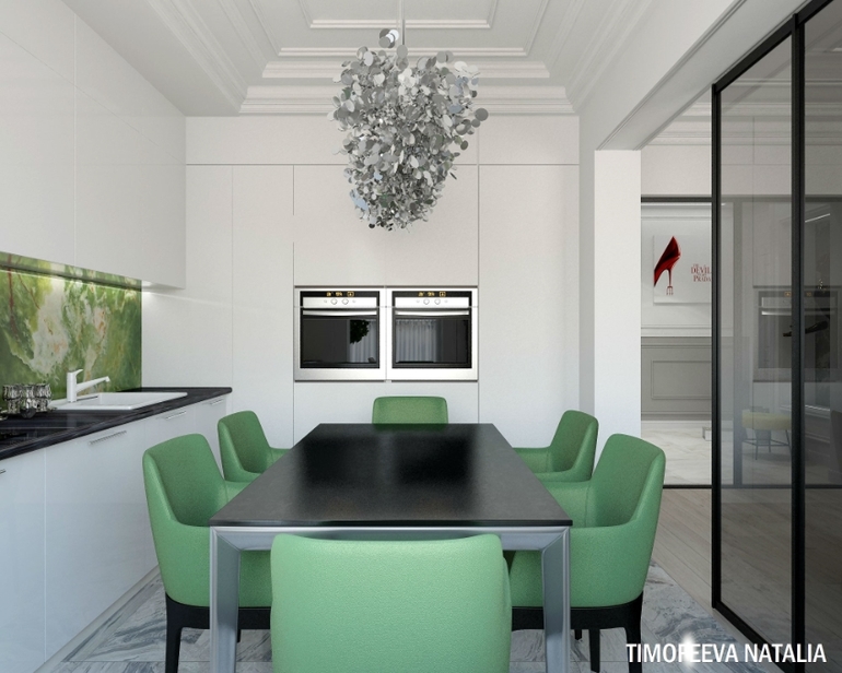 Очень все понравилось , особенно зеленые стулья на кухне... Необычно... Можно узнать что за кресло в углу в гостиной ??