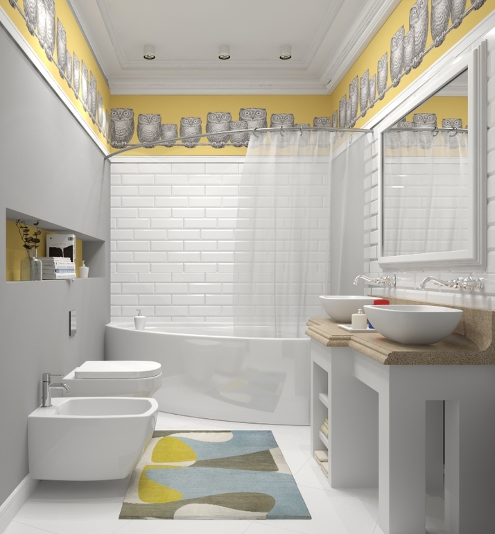 А совы в ванной, это что? Обои или плитка.