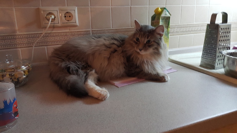 Отлично ведет себя. Моется легко,грязь,жир и пыль не видно. У нас только декор из другой серии, тк родной в концепцию кухни не вписывался совсем
