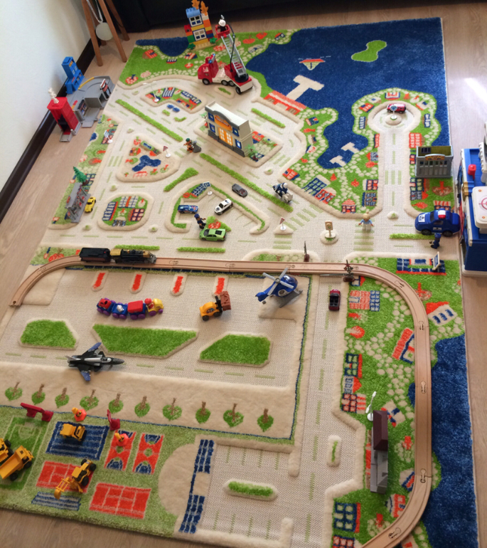У нас комната вообще в морском стиле, кровать как корабль (понятно, что это была папина мечта детства), а ребёнок у нас любит машинки (когда делали ремонт и покупали мебель ещё не знали об этом). В итоге у нас теперь между кораблем и сундуком лежит ковёр с машинками и дорогами)