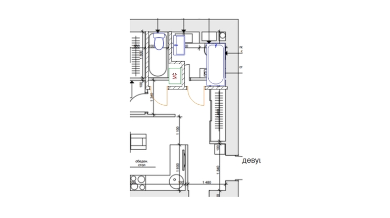 Насчет туалета слева - эта надо с сантехником разговаривать. Сможет ли он протянуть к нему коммуникации, т.к. они должны идти под уклоном - унитаз может получится на подиуме. Обычно, унитаз ставится максимально близко к стояку, но могут быть и другие варианты.