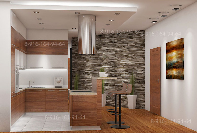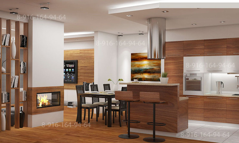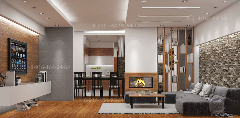 Дизайн интерьера 80 кв.м. Гостиная - кухня - коридор