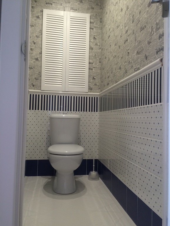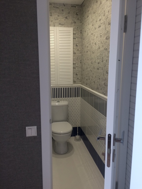 А при установке двери, образовался ли у вас зазор между стеной и наличником со стороны туалета? Я этот момент не могу понять, если плитка не до потолка, то там где плитка наличник плотно прилегает, а выше как? Или вы плитку не до конца стены клали, чтобы наличник утопить?