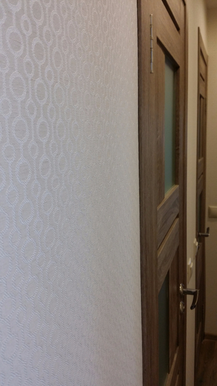 В прихожей пока особо нечего показывать, там пока пусто, нет ни полки для обуви, ни вешалки, ни предметов декора.. единственно украшение - обои)))
