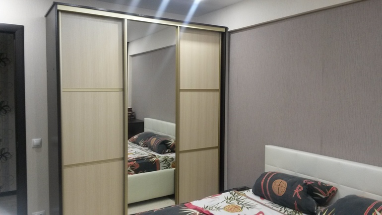 Интерьерное решение спальниВот такая спальня у меня получилась. Она мне ооочень нравиться, но кажется что очень строгая. Подскажите какое покрывало и чем можно разбавить эту строгость )))) И еще, никак не могу решить, хочу на комод поставить рамки с фотографиями, мои с сыном, а какой цвет рамок выбрать? Венге или все таки под цвет вставок в мебели? А может и то и другое?))))