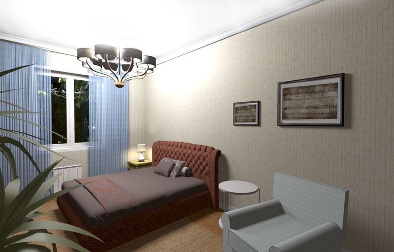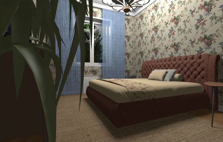 А может первыми обрями сделать 2 стены всего, а остальные спокойными. И шторы в спальне все таки должны быть портьеры и тюль. Шторы синие глубокие бы сделать - не прозрачные + тюль, сразу вид другой будет, уютнее. А вы в архикаде виз делаете?