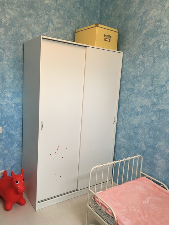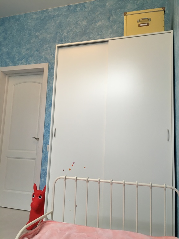 Столик поменяю под стул. Ещё хочу с торца шкафа приклеить зеркало (или повесить розовое икеевское?).