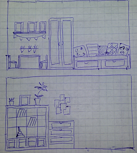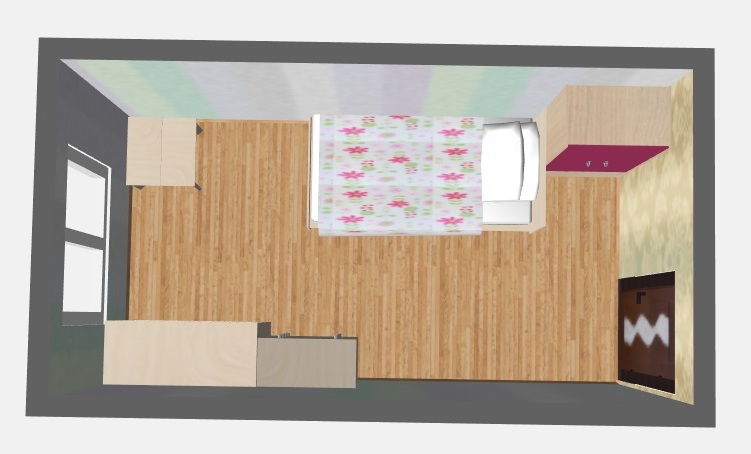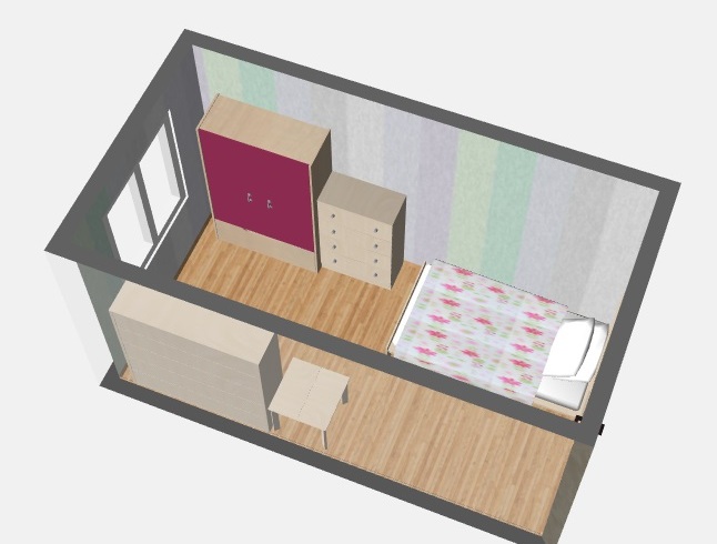 Я программе ставила кровать потом шкаф, но блин в 3д , этот шкаф делает комнату вообще малюсенькой, он как бы делит эту комнату на два помещения, мне не понравилось и поэтому поставила шкаф в угол, так нравится больше)