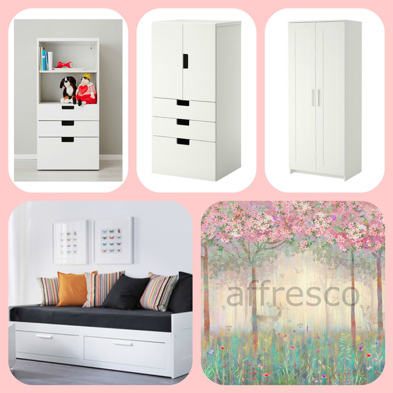 уже с размерами))) просто хочу определиться с расстановкой, если стол ставить у окна, то фреску с деревом планирую где кровать, а если как сейчас, то хочу сад в игровой зоне