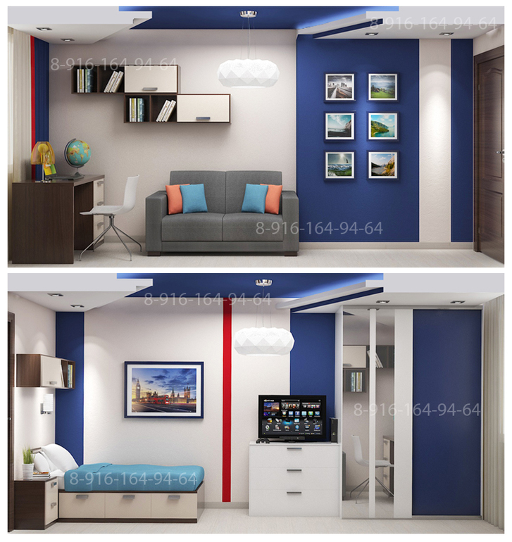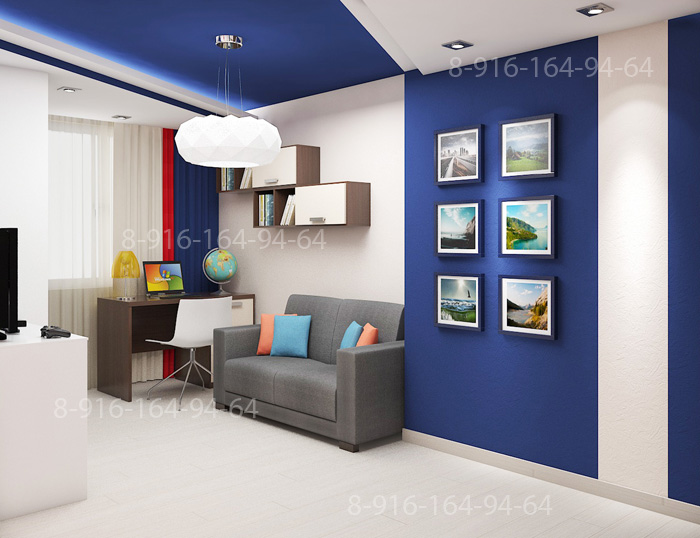 План расстановки мебели и цветовое решение согласовывались с заказчиком. Мальчику понравилась комната.