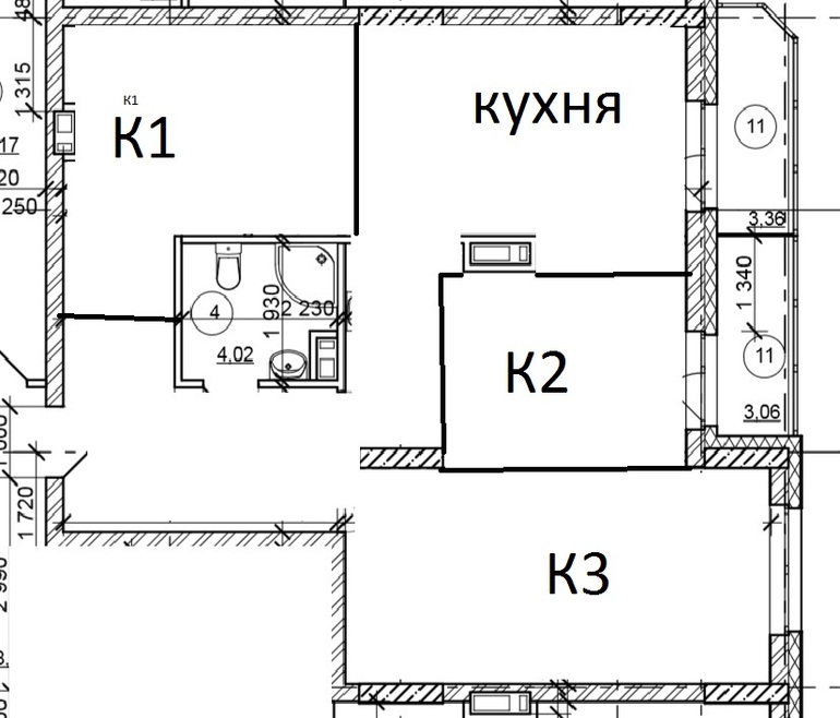 Писала, писала и мне позвонили..все с нуля)) напишу вариант в другом направлении: объеденить кухню и туалет, сделав на месте туалета зону готовки. Есть там воздуховод, но думаю его можно обыграть. Из ванны и гардеробной, можно сделать ванную как есть, второй с/у и гардеробную 2. В вашем варианте, сделала бы справа от оставшейся ванной еще туалет или К2 увеличила а туалет доп.на месте ванны оригиналтной слева ( только размеров под туалет), а справа уже кухню, объединенную с комнатой или просто с перегородкойили проходную кухню в зал.. 3. Поспрашивайте дизайнеров, есть на ББ с не Московскими ценами.