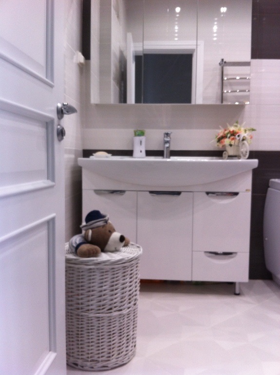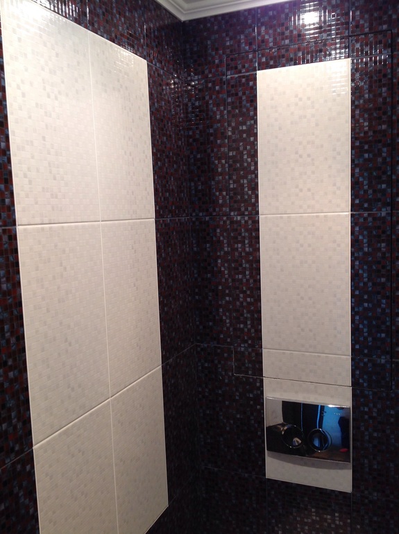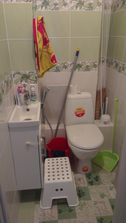 Это хорошо! На самом деле, ширина 94 : вполне себе. Ну что-то съестся плиткой, но 90 см точно останется. Не такой уж и узкий туалет, расширять нет необходимости, и я бы поверху где получится повесила бы ящички для бумаги и химии всякой, если закатываете банки то и для банок, раз уж есть пространство, надо его использовать. Насчёт раскладки плитки, я вообще не эксперт. Ясно, что от горизонтальных полосочек придётся отказаться ;) вот вам в порядке идеи пример моей раскладки: у нас правда с длиной проблем нет, совсем наоборот))) но мы пытались вверх вытянуть чтоб потолок не давил и было ощущение окон в тесной комнате)
