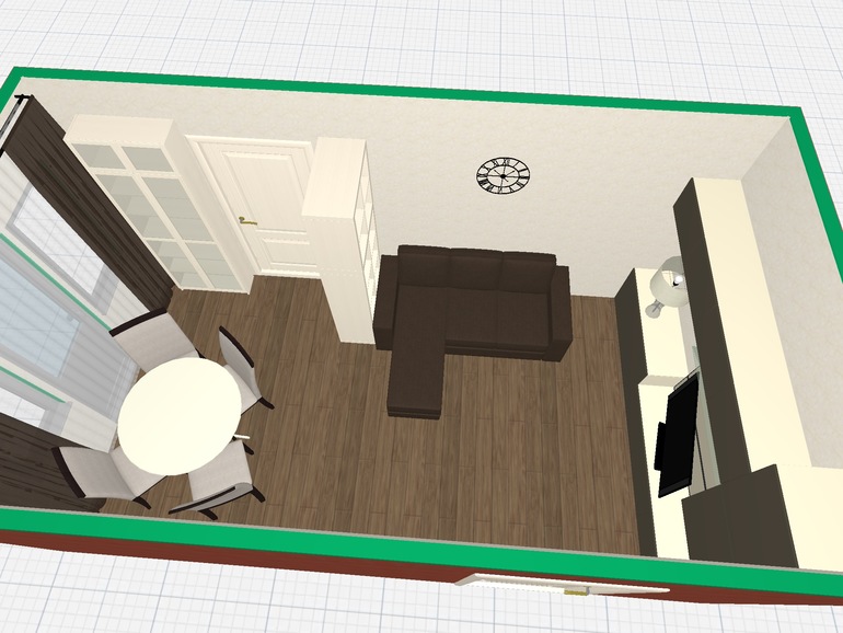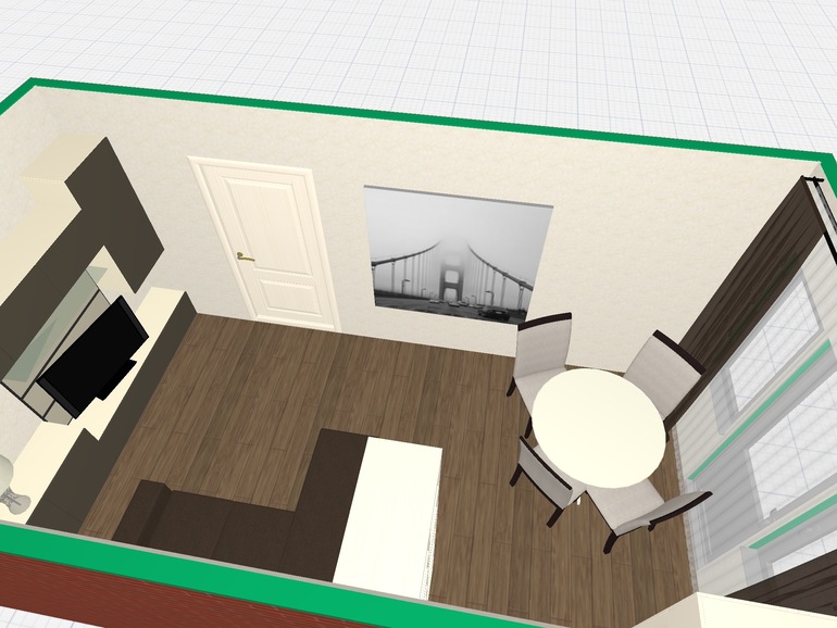 Интерьерное решение гостинойДоброе утро всем!) Хочу показать вам два варианта расстановки мебели в гостиной. В комнате две двери, одна с прихожей, другая поменьше- идет в спальню.