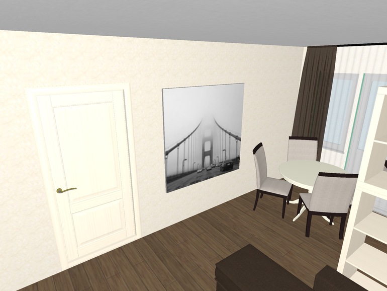 У нас видимо такая же хрущевка )), только есть ещё узкая 3-я дверь в темную комнату, по стене где дверь в спальню.