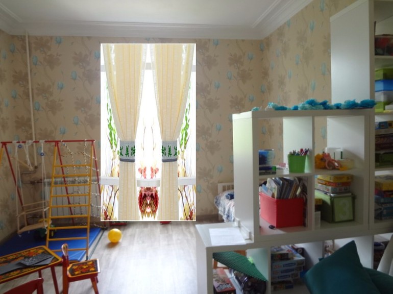 Мне кажется вашей детской подойдет светлая вуаль и портьеры- однотонная нежная бирюза,карниз не во всю стену...я даже представляю как это будет здорово,странно,что Вы отказываесь от бирюзы)
