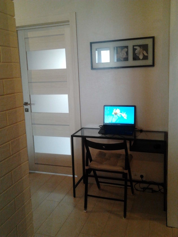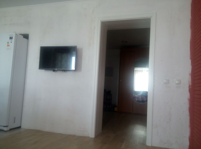 Светлый, тёплого оттенка (чтоб сочетался с полом и столиким). Я бы посоветовала обои под покраску, у Вас и так много фактур.
