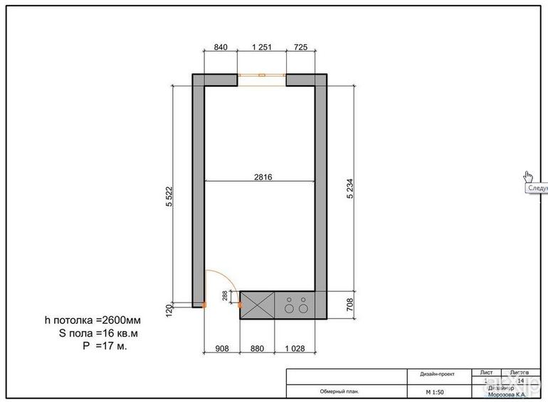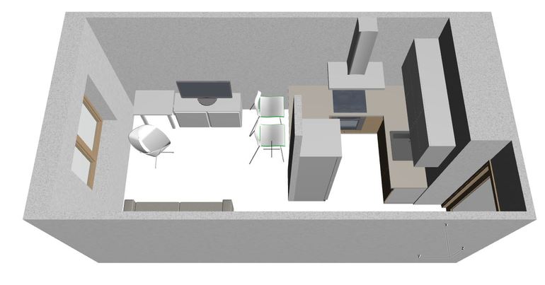 Интерьерное решение кухниЕсть такая кухня. Хотим разделить её на две зоны и сделать кухню-гостиную.