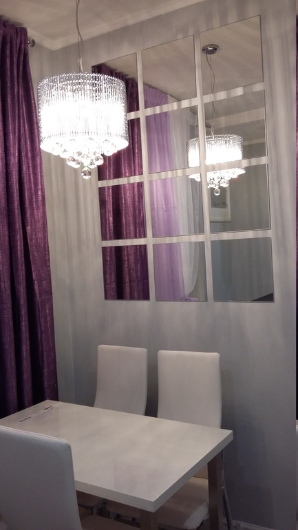 Очень стильно получилось, как с картинок! От зеркальной стены в восторге. Ещё нравится такое сочетание белого и оттенков фиолетового. Я в спальную очень давно мечтала белоснежную дверь установить, заказали в софье из серии бридж, тоже без стекол.