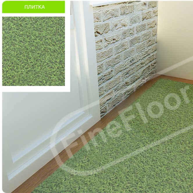 Похоже на плитку пвх файнфлор. У них раньше как раз под траву и камушки было. Сейчас Декория такое поставляет. Клеится к основанию на клей, вырезается ))