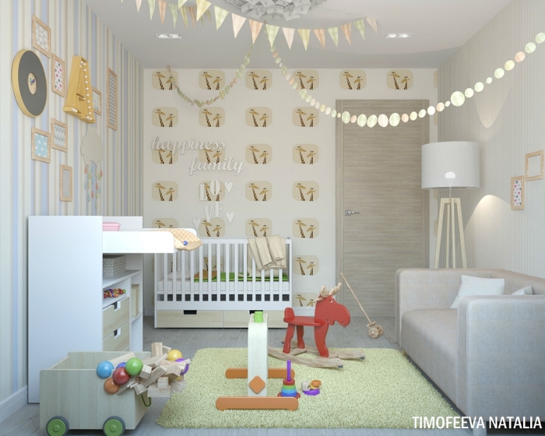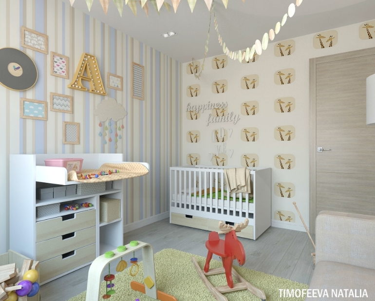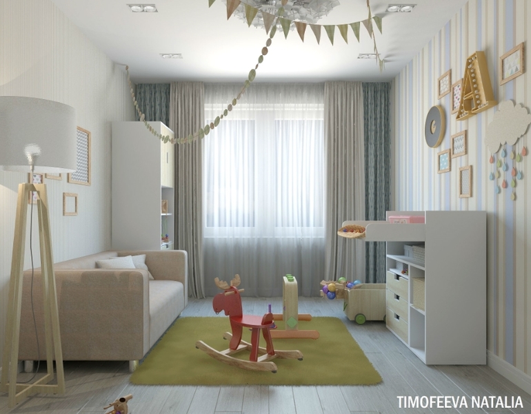 Дизайн проект для молодой семьи с маленьким ребенком. Стиль интерьера квартиры современный.