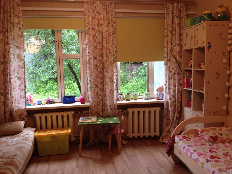Декор окон. Текстиль. Жалюзи.Вот так я оформила окна. Остались мелочи, одеть чехлы на радиаторы и еще кое-что. Теперь вот думаю, не лишняя ли штора в середине....? Просто там проходит вниз труба и уж очень хотелось ее закрыть.Стоит ли повесить еще вуаль белую или нитяные шторы? У кого какие мнения? Буду рада советам. В последствии вместо маленького будет письменный стол школьника.
