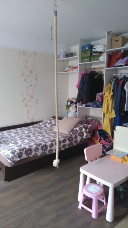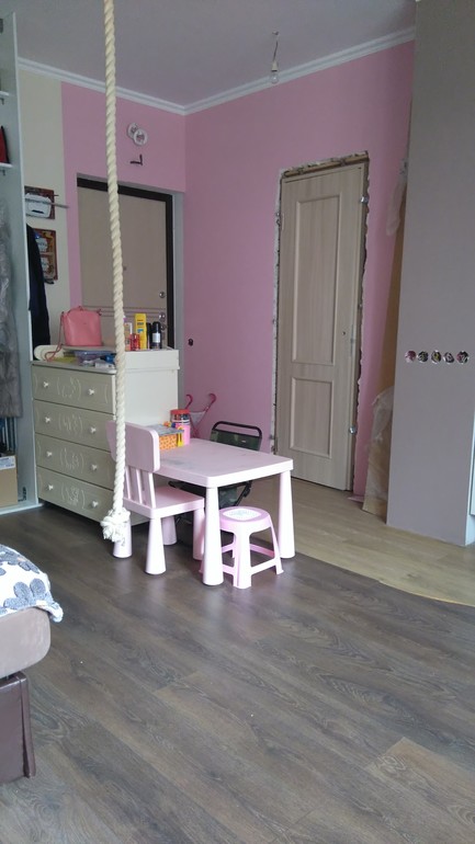 Квартиру оставили студию, так удобнее и за ребенком наблюдать и пространства больше). Шкаф самодельный, еще не до конца доделанный, нужно двери раздвижные ставить зеркальные. И кухня, нужно верх докупать и фасады (пока так, но очень все пылится в таком виде) и технику на кухню тоже покупать. Балкон вообще не сделан, фотки его поэтому и нету. Плитку на кухне и в ванной муж докладывал и как всегда с ремонтом бывает, на кухню плитки перебор оказалось, а в ванну не хватило, поэтому ванна пока не доделана... . Обои клеили вначале с мужем, а потом у него времени не было, а у меня дочка у бабушки была, пришлось самой клеить, сама не знаю как я смогла поклеить все (повторить уже не смогу))), наверное пыль от стен так достала, что пересилила все и хотелось уже красоты, а не белых стен..