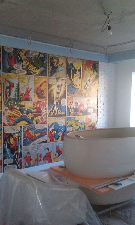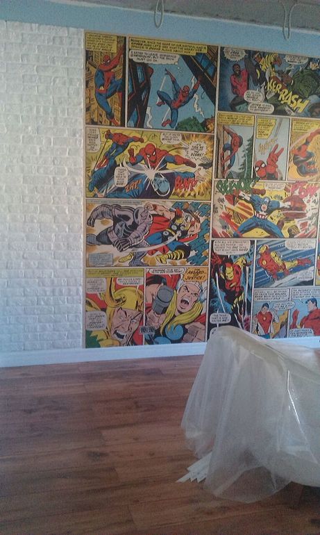 Класс!!! А что за постеры с супергероями? Это обои? Мне тоже на часть стены очень нужно!!!