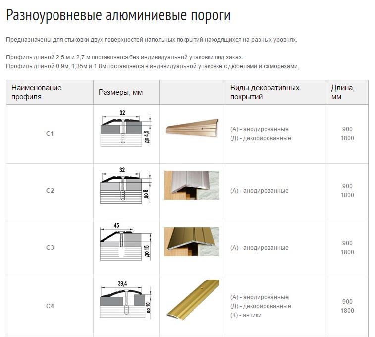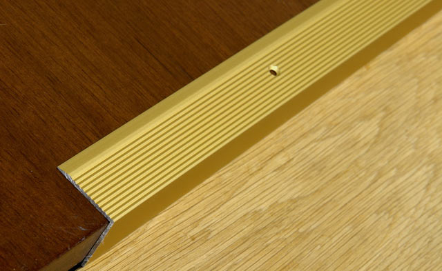 Там, где получается перепад уровня пола, используют не прямой, а угловой порожек