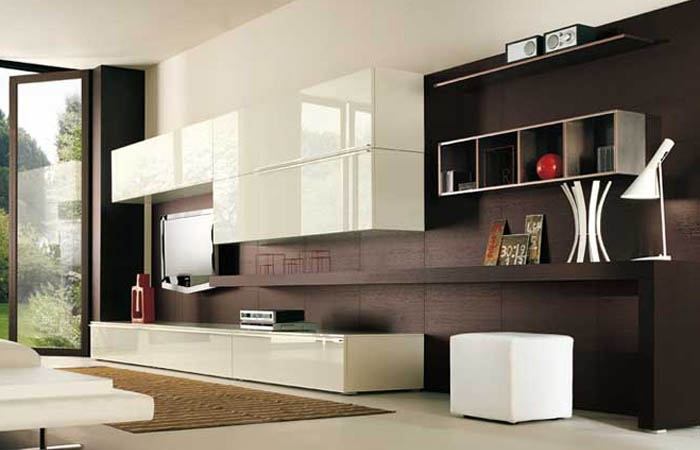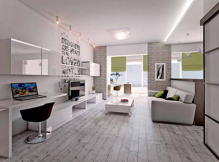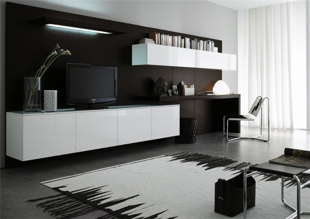 Интерьерное решение гостинойОчень важный момент, чтоб была не громосткая. И чтоб полка переходила в рабочий стол. Может кто что примерное видел?
