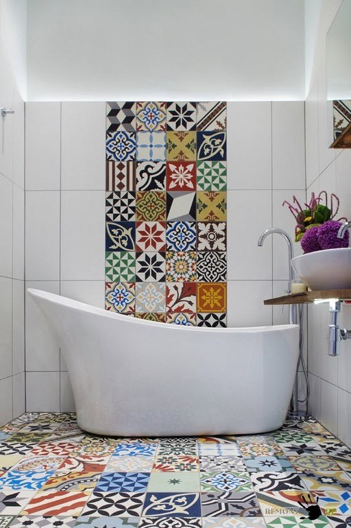 Очень прошу совета. Есть небольшая ванная 1,70х1,80 м2. Свободная площадь(не занятая ванной, раковиной и стиралкой) - пятачок 1х1,20. Мечтала о плитке с рисунком или пэчворк. Нашла плитку, понравилась очень! Но свекровь убеждает, что это безвкусно и на такую маленькую площадь рисунок никак нельзя. Засомневалась. Плитка вот такая, размер 45х45 см