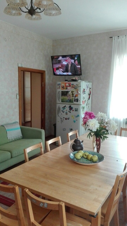 Стол шикарен! Площадь огромная)) Можно таких "делов" наделать))). Если по минимуму: холодильник ближе к кухне поставьте. С кухни сверху все уберите, магниты с холодильника тоже. Если тв смотрите за столом, то оставьте на той стене, где сейчас; если смотрите с дивана, то расположите напротив дивана. Фартук поменяйте, только не темный цвет. Обои однотонные, либо обои под покраску, цвет природный - легкий беж, в общем любой светлый теплый. Поищите картинки вдохновляющие.
