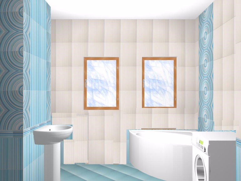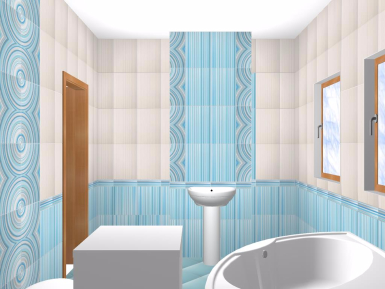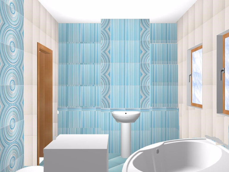 1) на последней картинке возле ванны неплохое решение, но можно просто голубой плиткой не кружочки. Круг слишком бросаются в глаза.