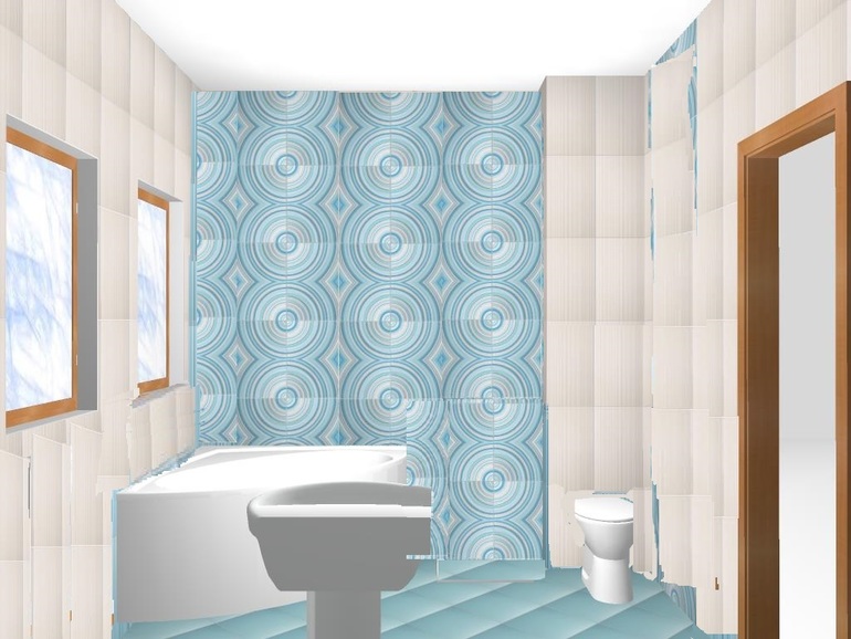 2) а кружочки сделать на выступе с умывальником. как на третий картинке, вся стена голубая а выступ кругами.