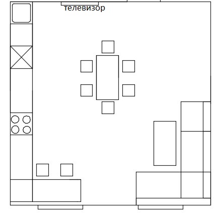 стулья легко передвигаются)хотя я сама люблю, что бы на полу ни чего не было, когда пол мою. Конечно с планировкой надо еще думать, может и буквой Г лучше будет. Кухня большая