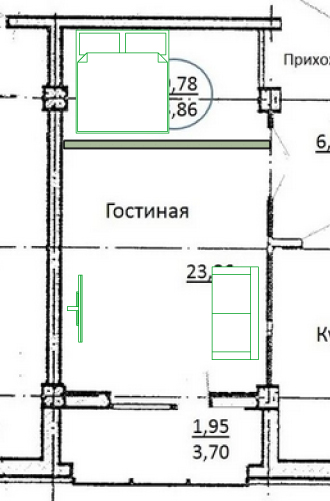 Предполагается поставить в гостиную кровать (шириной 150 см) с удобным матрацем, чтобы обойтись без ежевечернего раскладывания дивана. Диван тоже планируется и небольшая рабочая зона для работы за компьютером.
